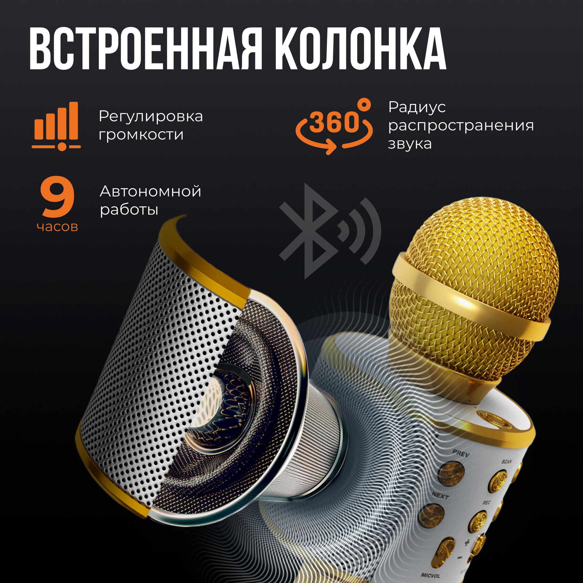 Отзывы на Микрофон для караоке Eternal Friday, Bluetooth, FM, microSD, цвет золото. Подарок на праздник