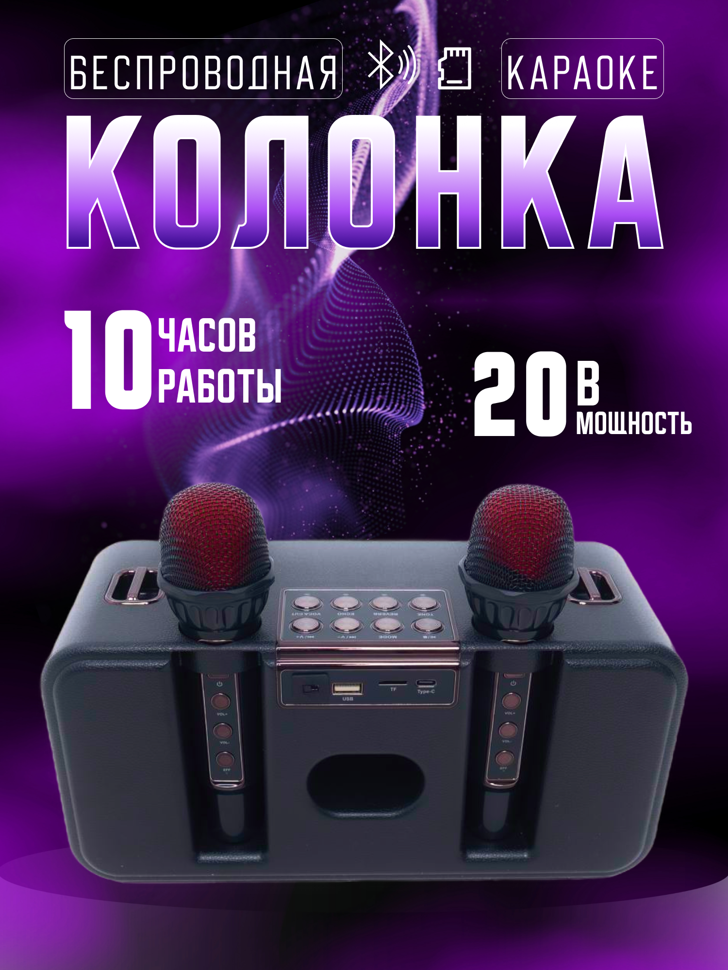10 цен на Караоке колонка для дома, дачи, с двумя беспроводными караоке микрофонами, колонка музыкальная портативная bluetooth колонка