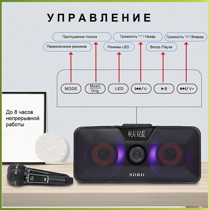 10 цен на REXUS SD-317 (Bl) - караоке колонка, LED подсветка, Bluetooth, USB