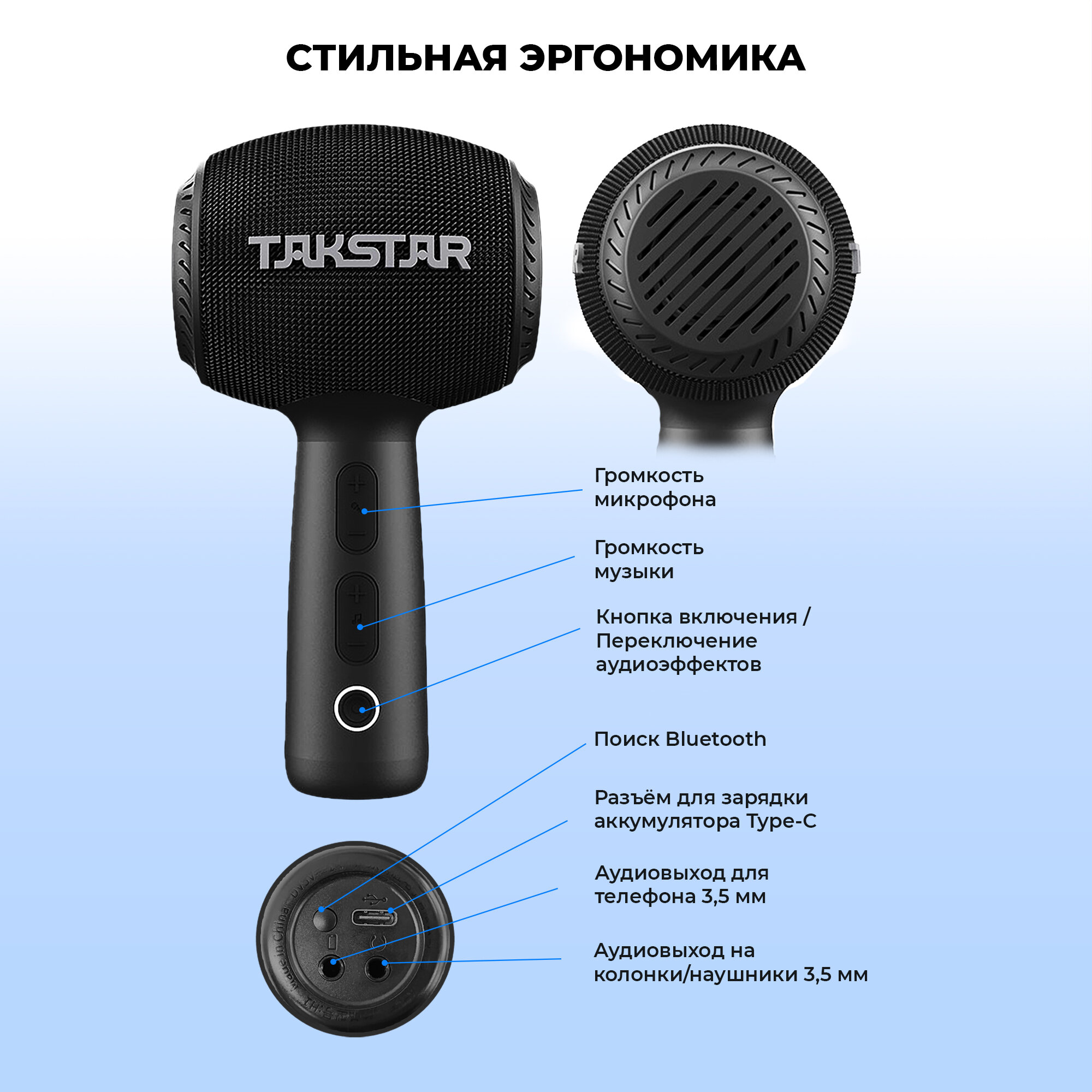 Универсальный караоке-микрофон с Bluetooth и встроенной колонкой TAKSTAR H1 информация: