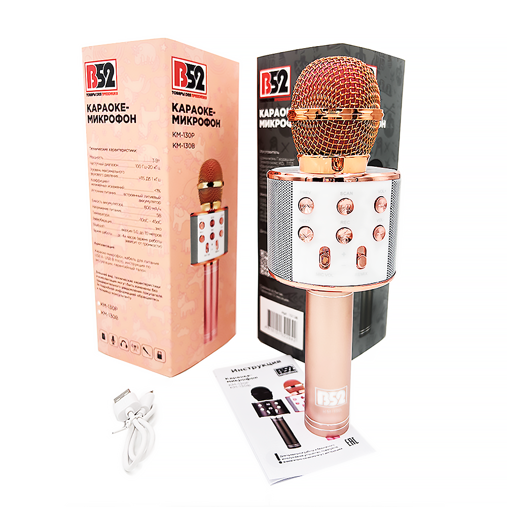 Гаджеты и подарки Noname Караоке-микрофон B52 KM-130P, 3Вт, АКБ 800мА/ч, BT (до10м), USB, беспр.микроф. информация: