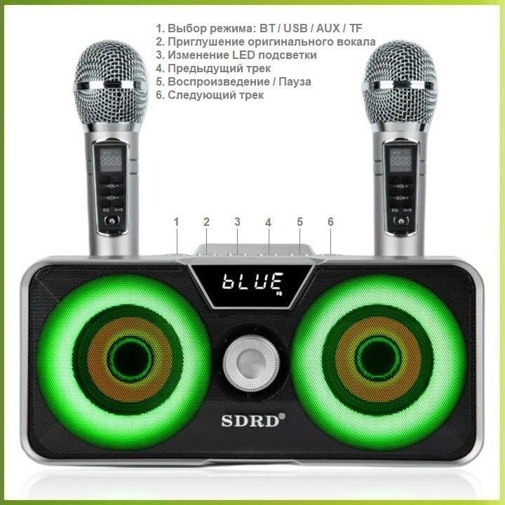 Отзывы на REXUS SD-317 (Gr) - караоке колонка, LED подсветка, Bluetooth, USB, AUX, TF