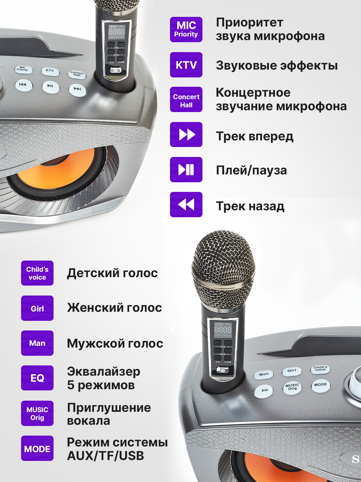 Караоке система с двумя беспроводными микрофонами "SD-306 PLUS" графит информация: