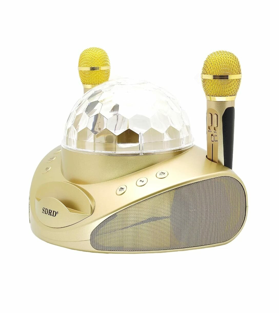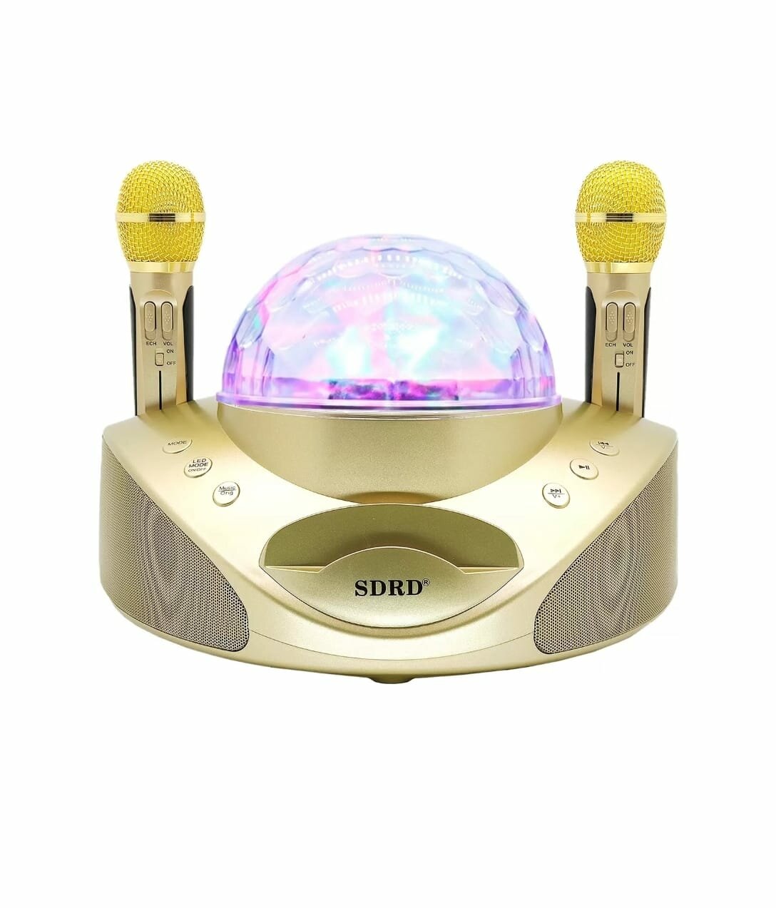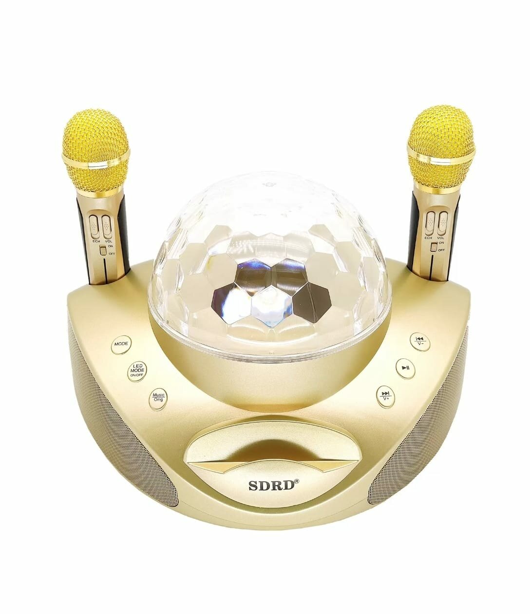 Отзывы на Караоке система беспроводная с Диско Шаром и двумя микрофонами SD-308 золото