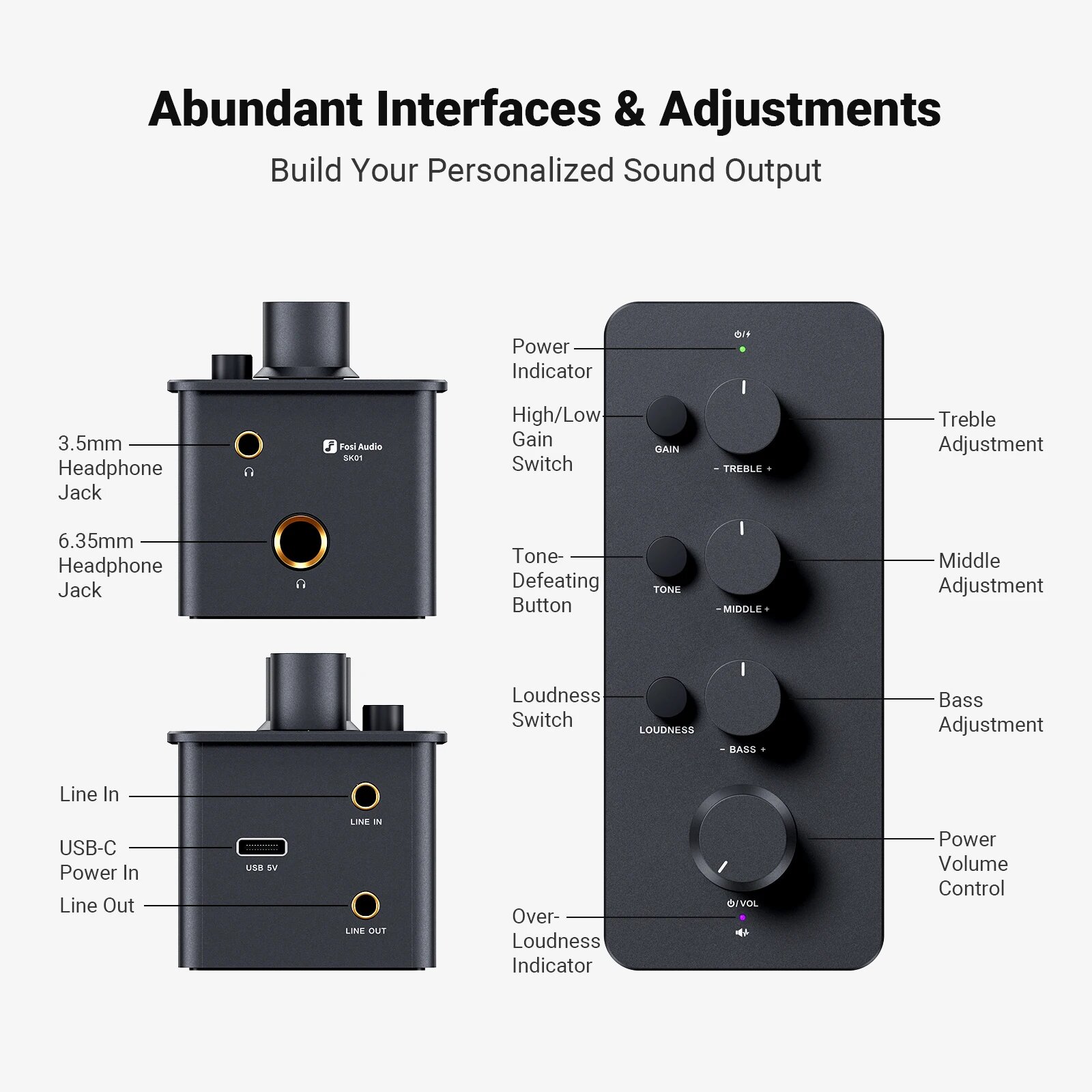 Усилитель и предусилитель для наушников Fosi Audio SK01 2 в 1 для наушников, усилитель мощности, активные динамики информация: