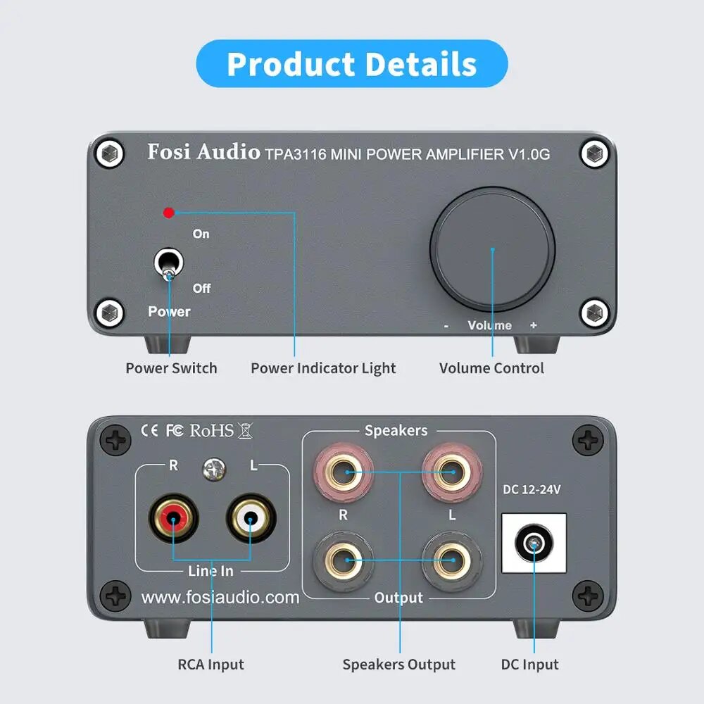 10 цен на Fosi аудио V1.0 2-канальный стерео аудио усилитель мощности класса D Mini Hi-Fi профессиональный цифровой усилитель для домашних динамиков 50 Вт x2