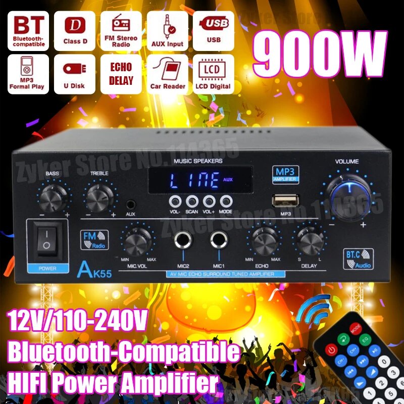 Усилители звука MAOZUA AK35/AK45/AK55 2-канальный Hi-Fi стерео с Bluetooth для домашнего авто караоке FM USB пульт дистанцион... информация: