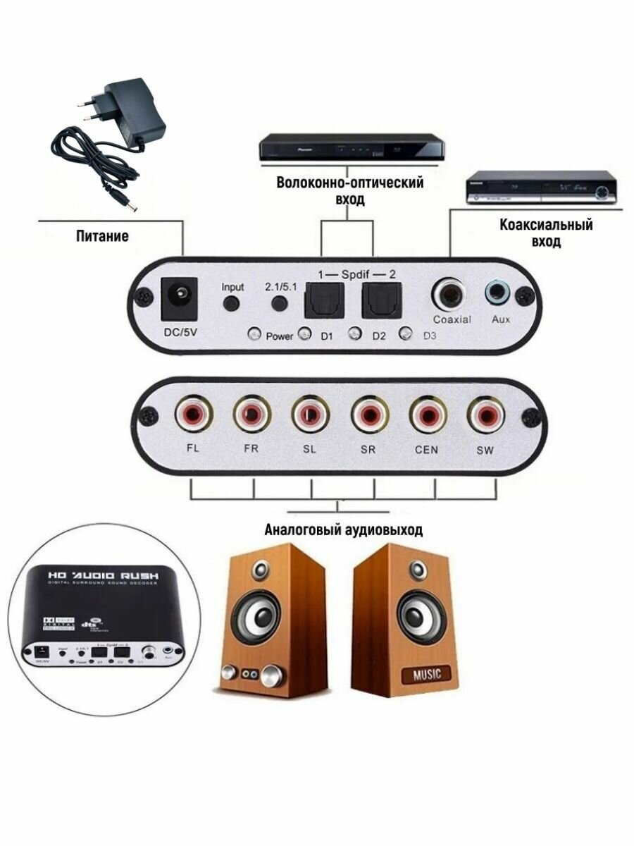 Аудио декодер 5.1 с комплектом кабелей информация: