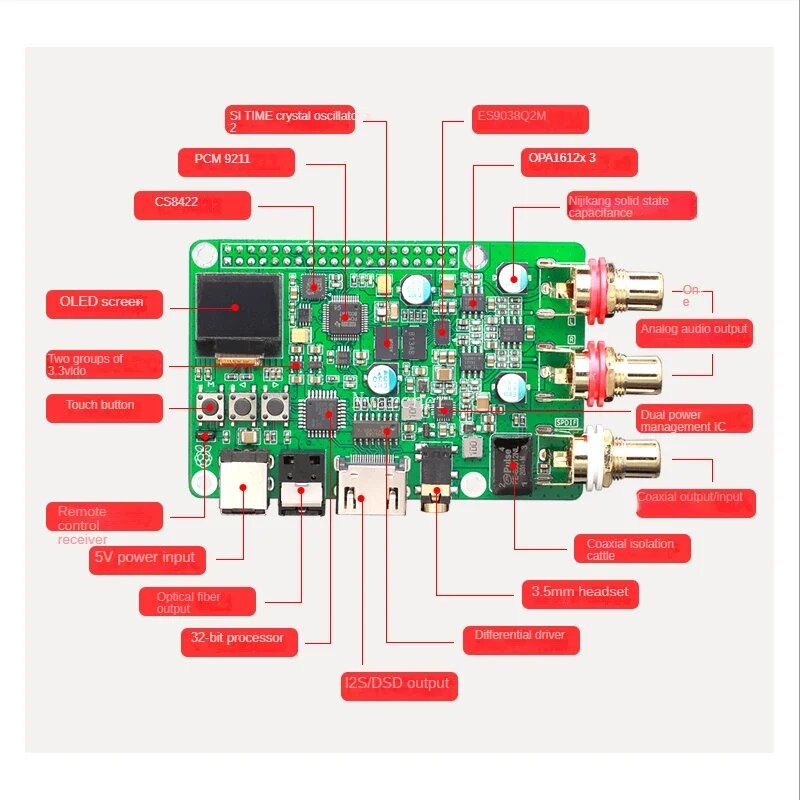 Отзывы на Nvarcher Raspberry Pi ES9038Q2m DAC аудио декодер плата HIFI коаксиальное волокно I2S аналоговый 3B + 4B 768K 32 бит DSD512