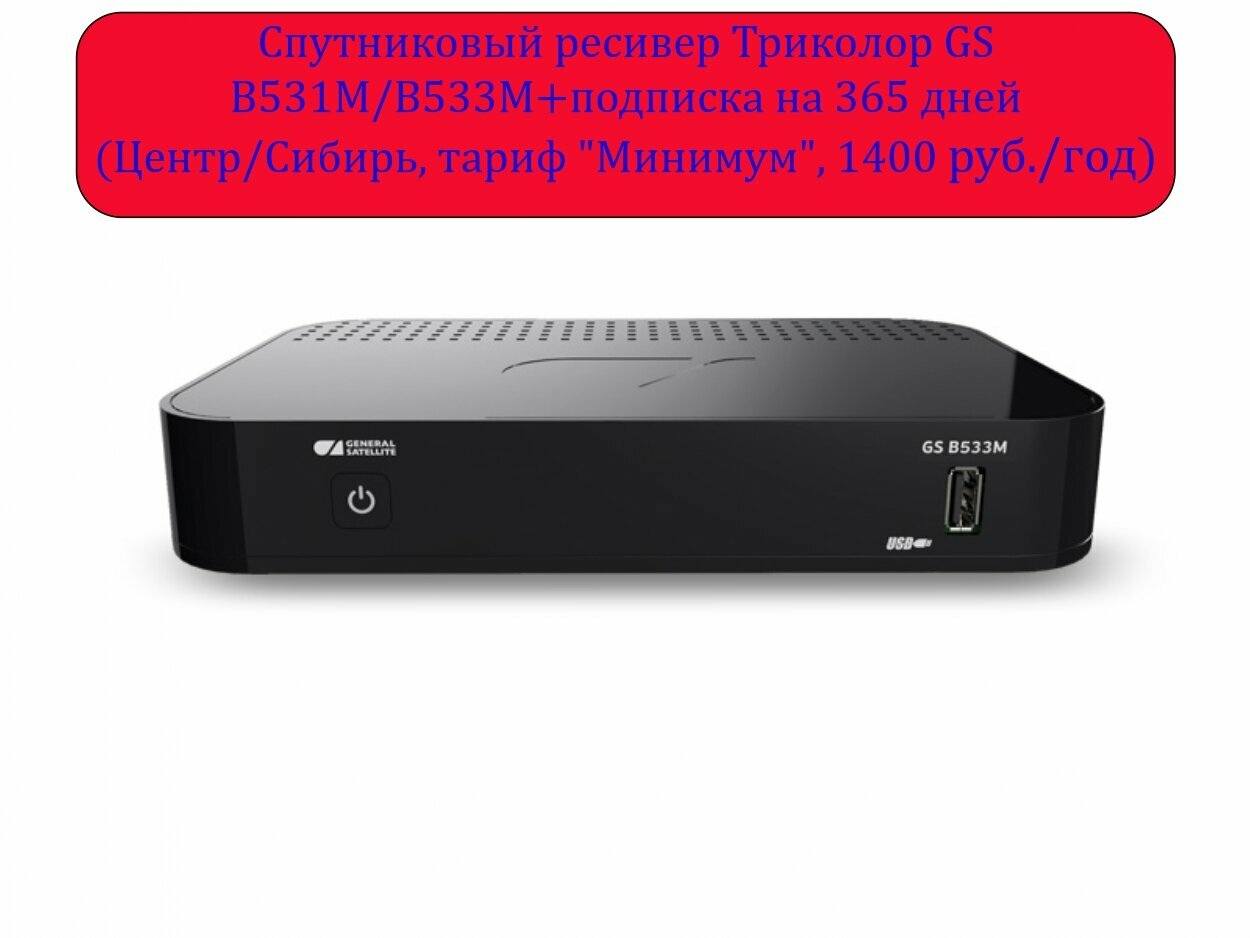 Спутниковый ресивер Триколор GS B531M/B533M+подписка на 365 дней (Центр/Сибирь, тариф "Минимум", 1400 руб./год) информация: