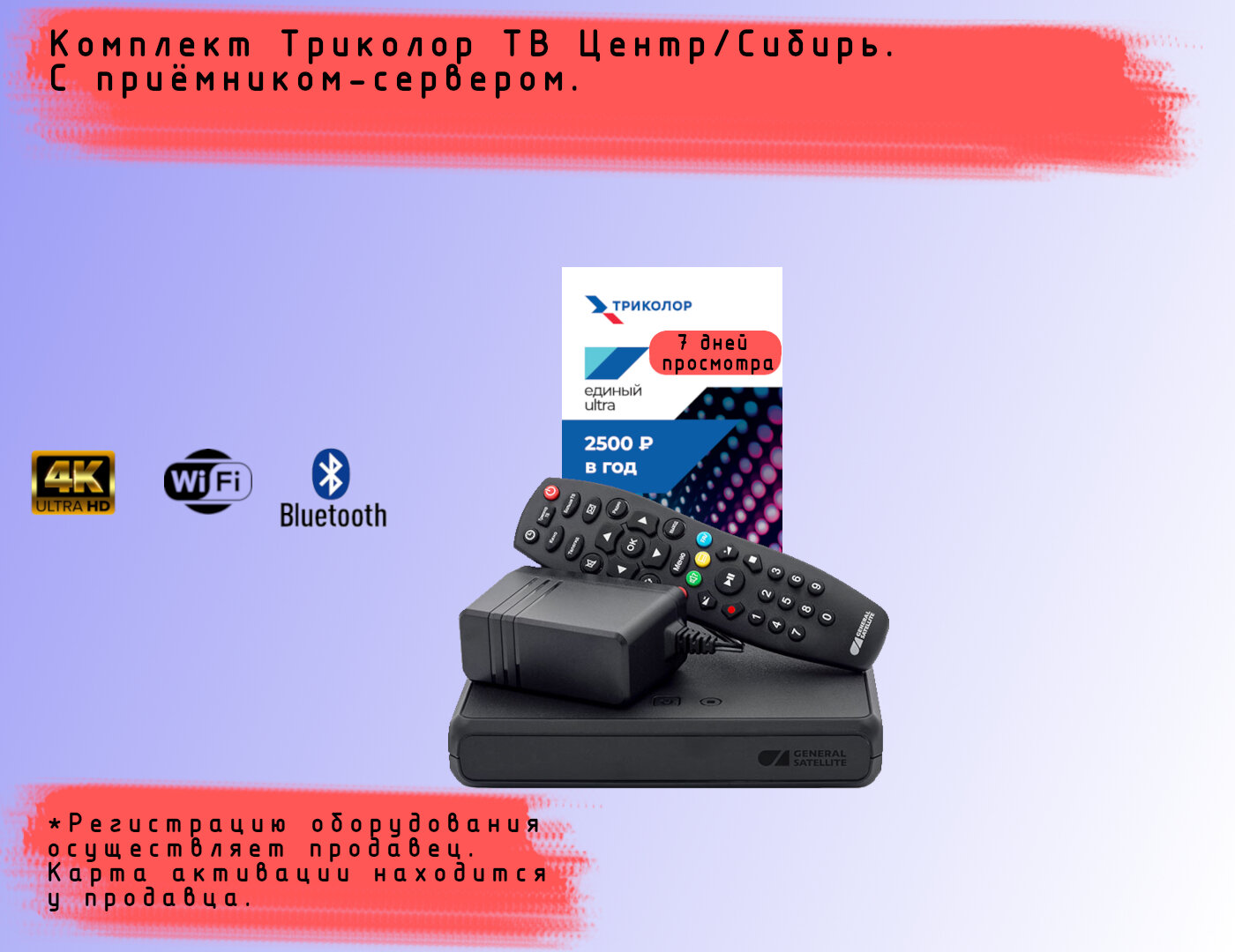 Спутниковый ресивер Триколор GS B623L/B523L/B626L+подписка на 7 дней (Центр, Единый Ультра HD, 2500 руб./год) информация: