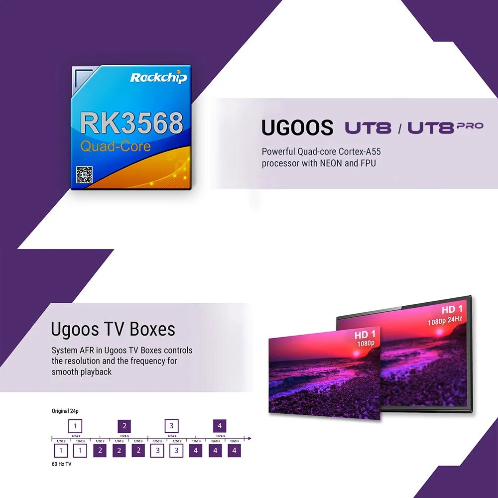 ТВ-приставка UGOOS UT8 PRO, Android 11,0, DDR4, 8 + 64 ГБ, RK3568, WiFi6 информация: