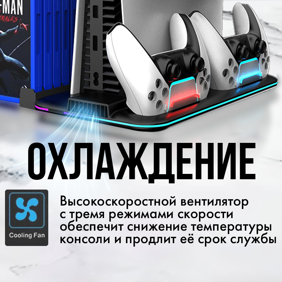 Зарядная док станция для Sony Playstation 5 Slim c охлаждением информация: