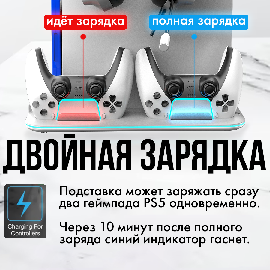 Зарядная док станция для Sony Playstation 5 Slim белая c охлаждением информация: