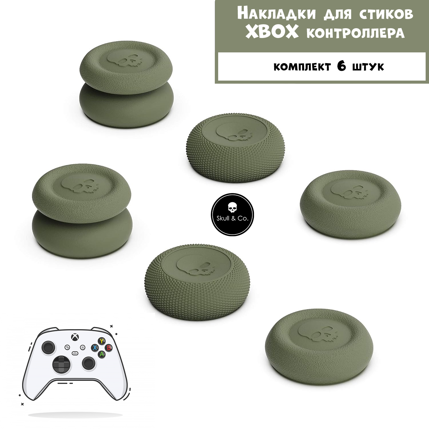 10 цен на Премиум накладки насадки Skull&Co на стики Xbox One, Series X, Series S (XSX/XSS) оливковые