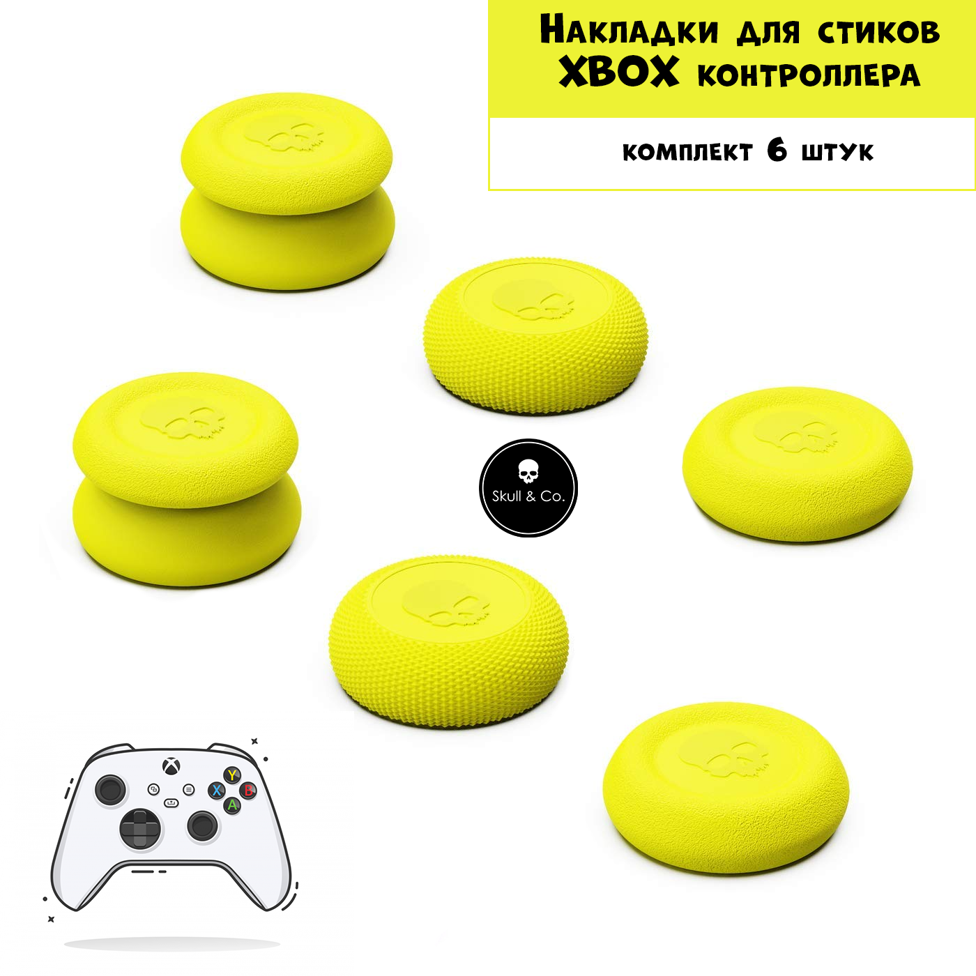Премиум накладки насадки Skull&Co на стики Xbox One, Series X, Series S (XSX/XSS) желтые информация: