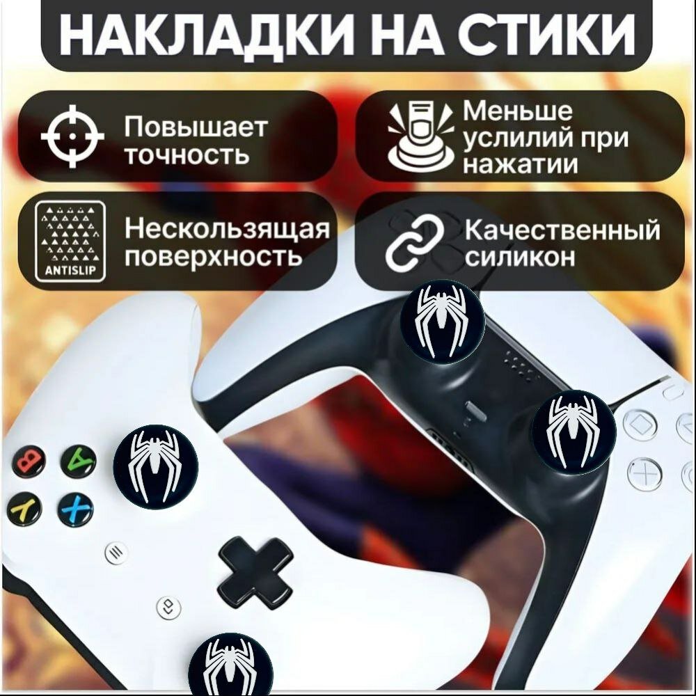 Отзывы на Накладки чехол на стики в стилистике Spider man black для геймпада Sony PS4, PS5, Xbox 360