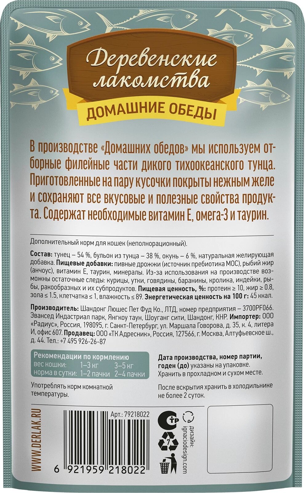Корм для кошек Деревенские Лакомства Домашние обеды Тунец с лососем в соусе