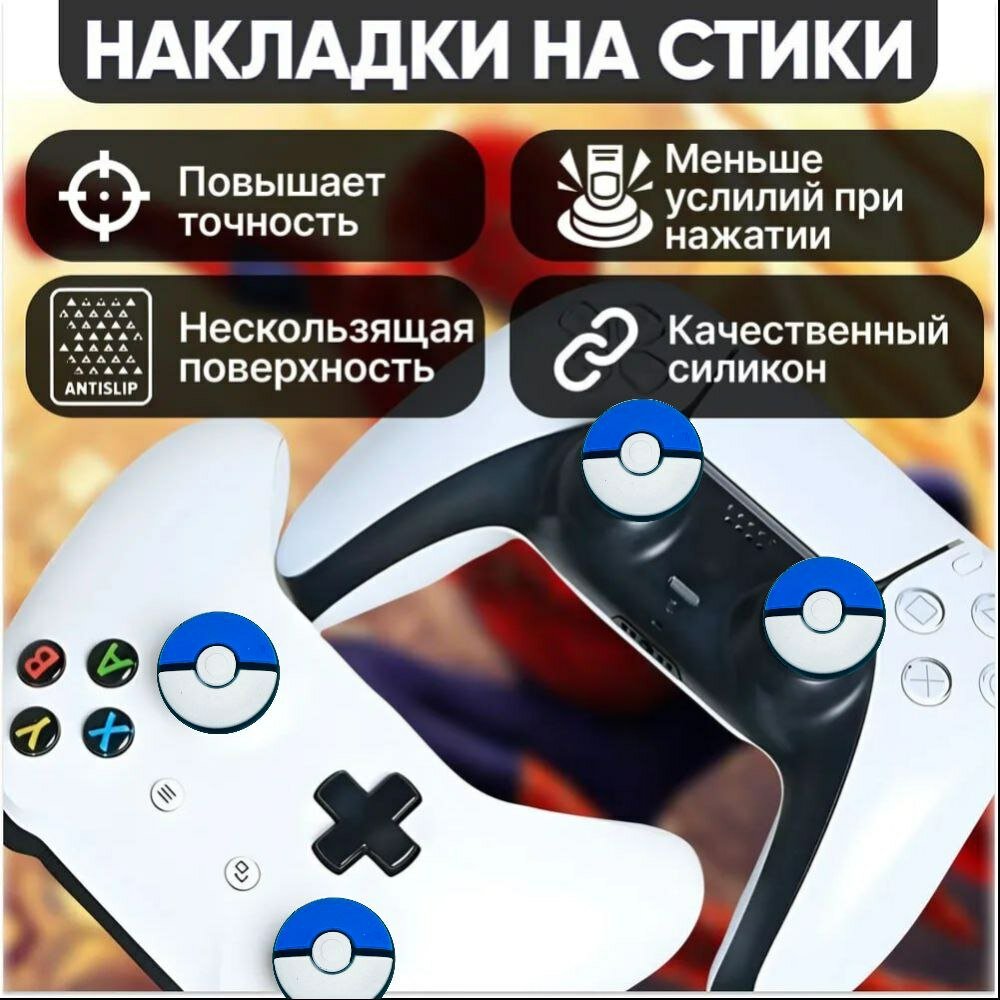 Отзывы на Накладки чехол на стики в стилистике Pokemon blue для геймпада Sony PS4, PS5, Xbox 360