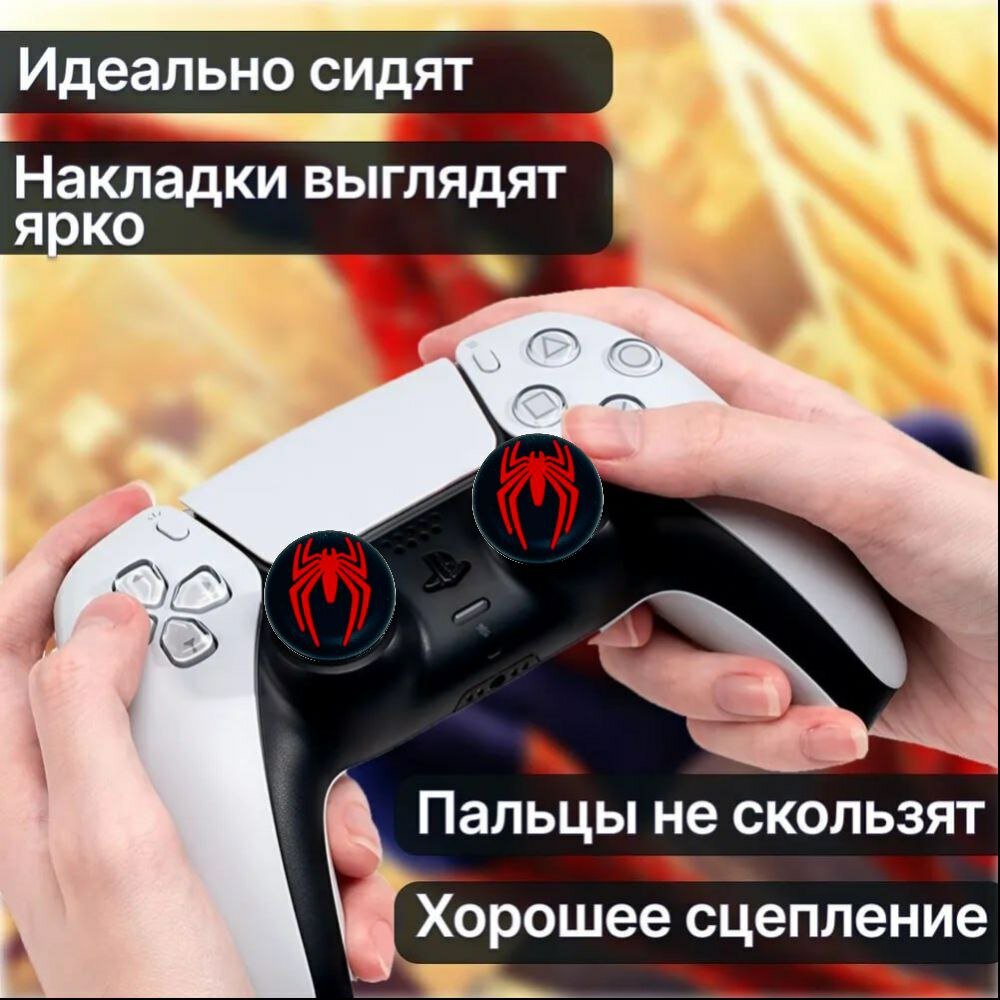 Отзывы на Накладки чехол на стики в стилистике Spiderman black-red для геймпада Sony PS4, PS5, Xbox 360