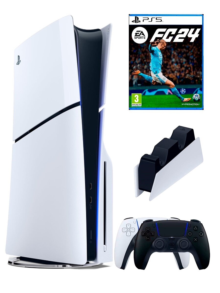 10 цен на PS5 (ПС5) Игровая приставка Sony PlayStation 5 Slim disc + 2-й геймпад(черный) + зарядное + игра FIFA 24
