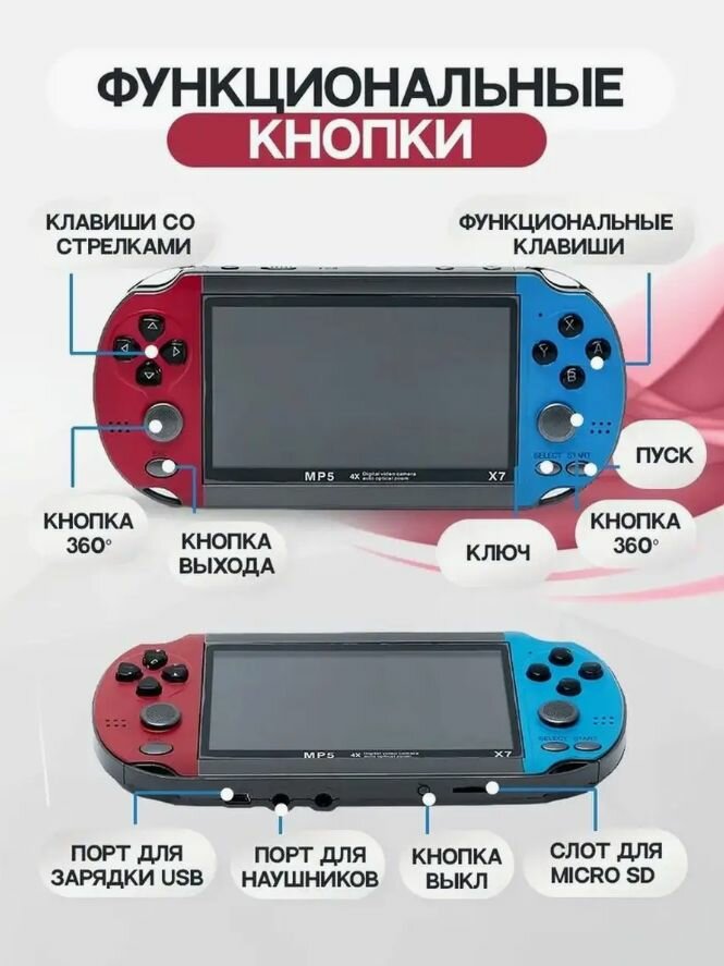 Игровая консоль МР5 X7 портативная 1000 игр 8Гб информация: