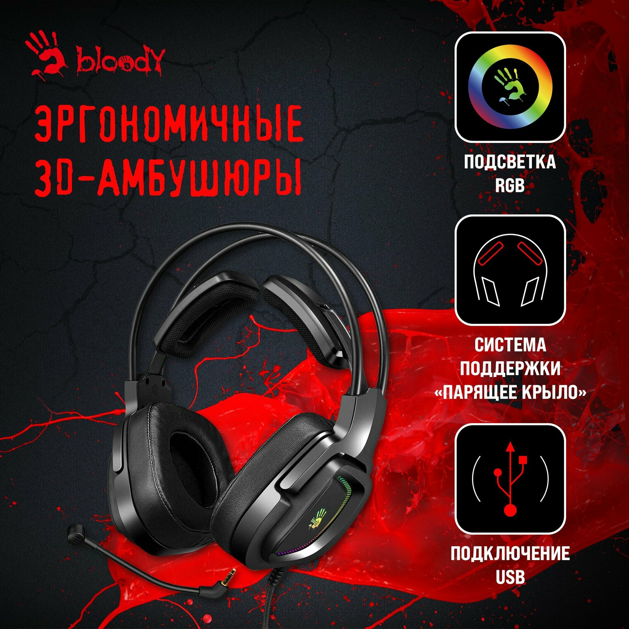 Игровые наушники с микрофоном A4Tech Bloody G575, Подсветка RGB, мониторные 7.1, 2м. USB,черный) информация:
