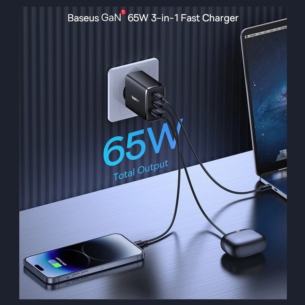 Зарядное устройство Baseus Cube Pro 2 x USB-C + USB, 65W (черный) (CCXFK65CE)