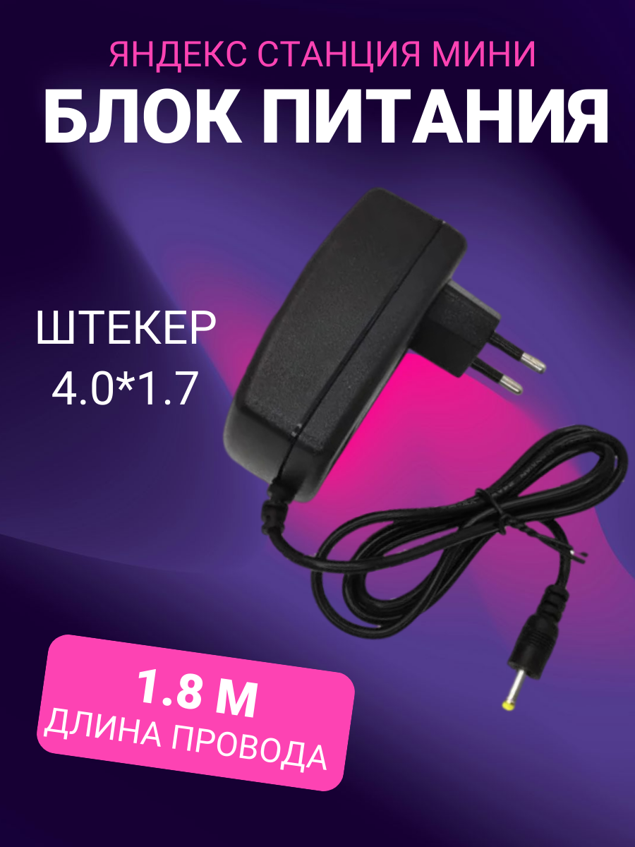 Зарядка черная YS521 для Яндекс Станция Алиса Мини 2.0 YNDX-00021 / YNDX-00020 15V 1.2A 4.0 x 1.7 мм