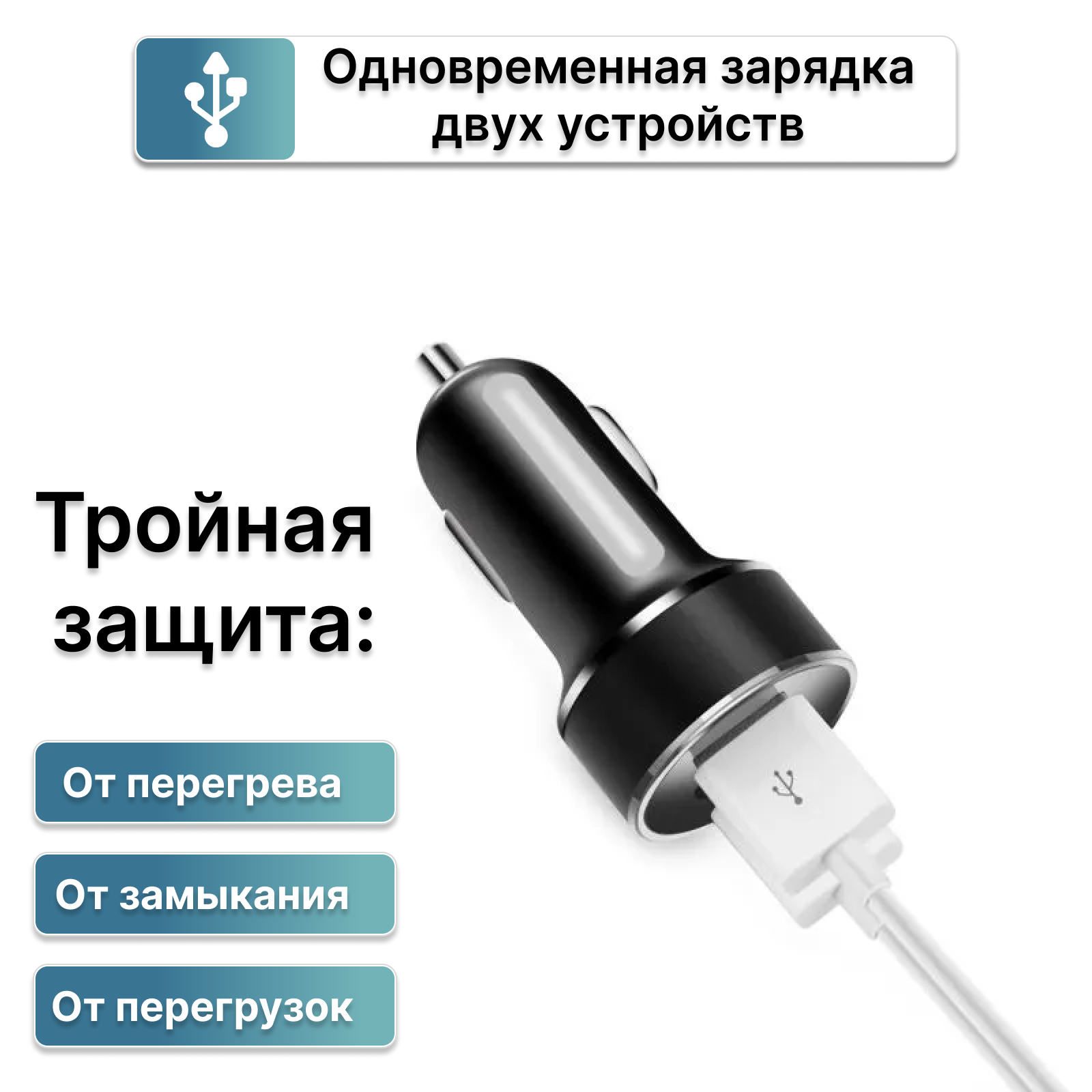 Автомобильное зарядное устройство в прикуриватель с вольтметром, 2 порта USB 3.1 А информация: