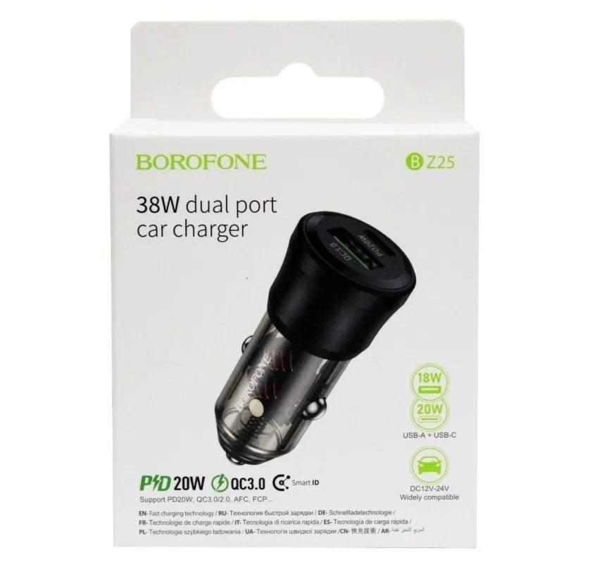 Отзывы на Устройство Зарядное В Прикуриватель 1Usb + 1 Type C 12V Borofone BOROFONE арт. BZ25 transparent black