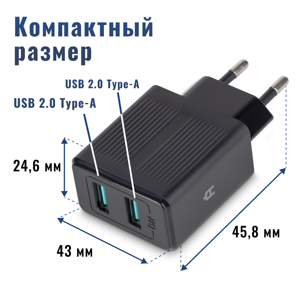 Сетевое зарядное устройство / блок питания Alteracs, 2xUSB, 12Вт, Black информация: