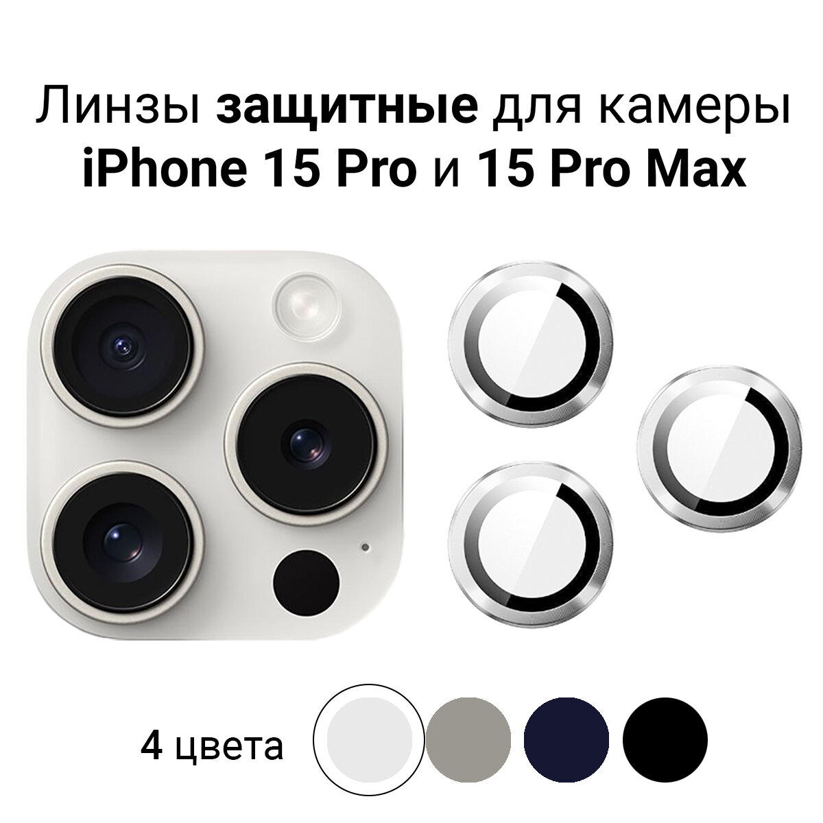 Линзы (стекла) для защиты камеры iPhone 15 Pro / 15 Pro Max Серебрситые информация: