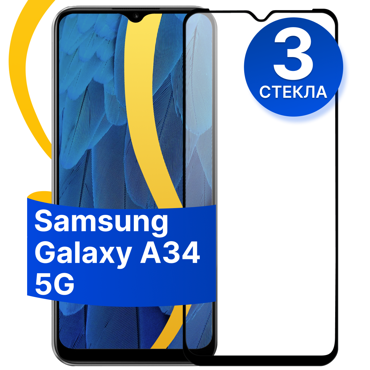 10 цен на Комплект из 3 шт. Глянцевое защитное стекло для телефона Samsung Galaxy A34 5G / Противоударное стекло на cмартфон Самсунг Галакси A34 5Г