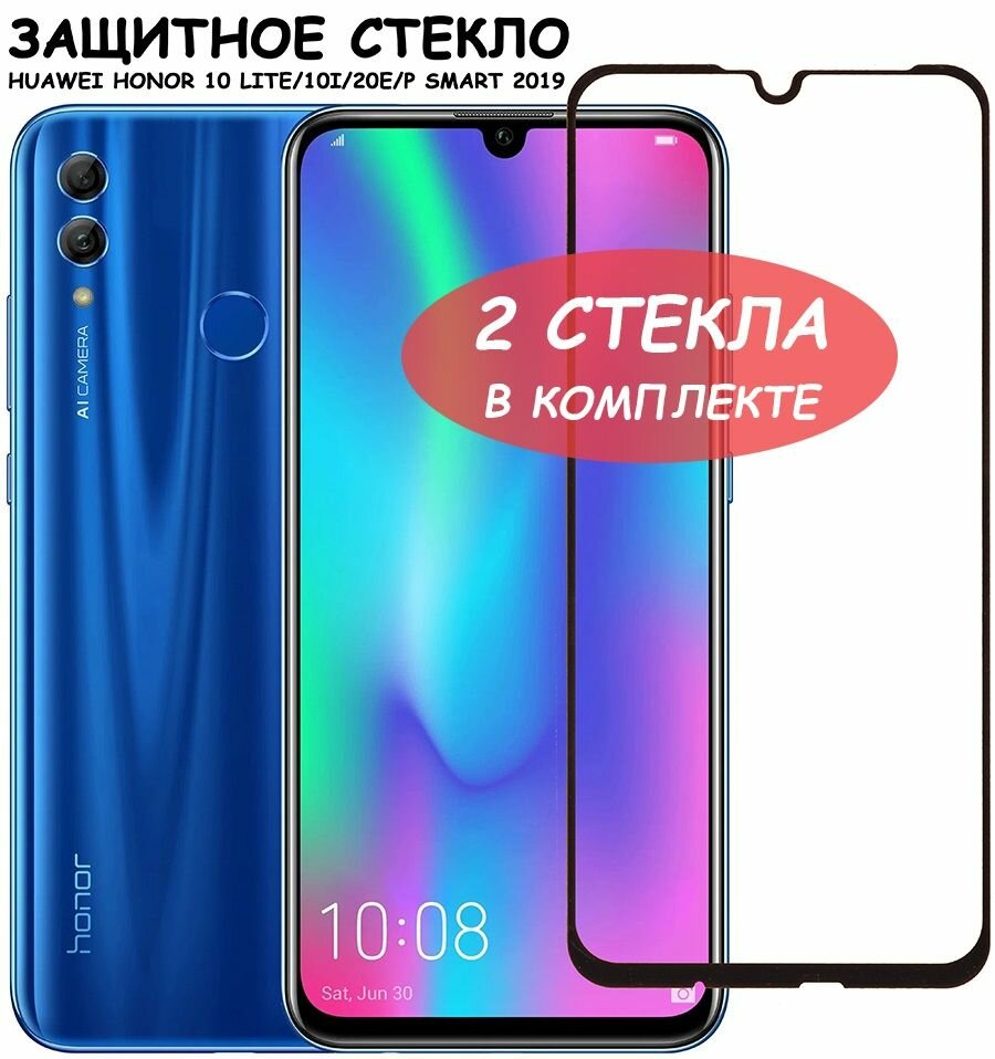 10 цен на Защитное стекло "Полное покрытие" для Huawei Honor 10 Lite 10i 20e P Smart 2019/хуавей хонор 10 лайт 10ай 20е п смарт 2019 Черное - 2 стекла в комплекте