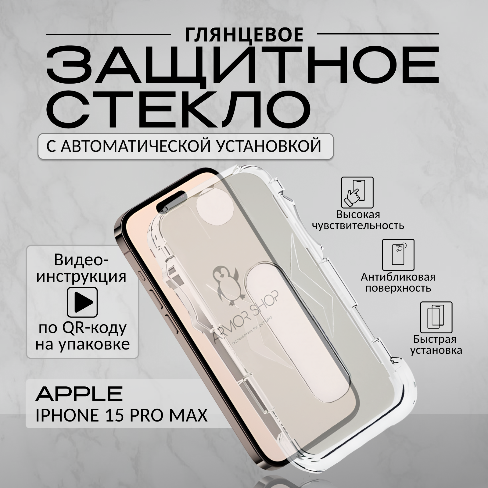 10 цен на Защитное стекло с "автоматической" установкой для iPhone 15 Pro Max, глянцевое
