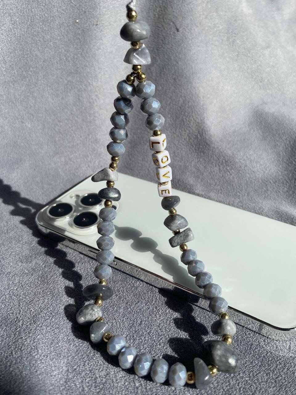 Шнурок на телефон из бусин и камней украшение для руки информация: