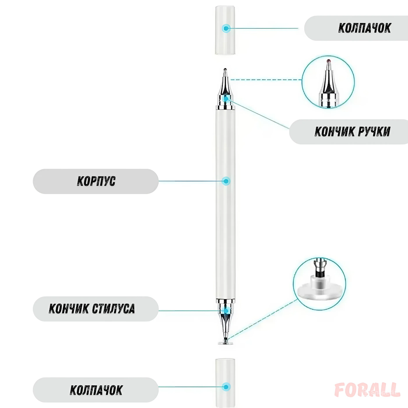 Универсальный стилус-ручка для телефона, планшета Pencil белый, двухсторонний информация: