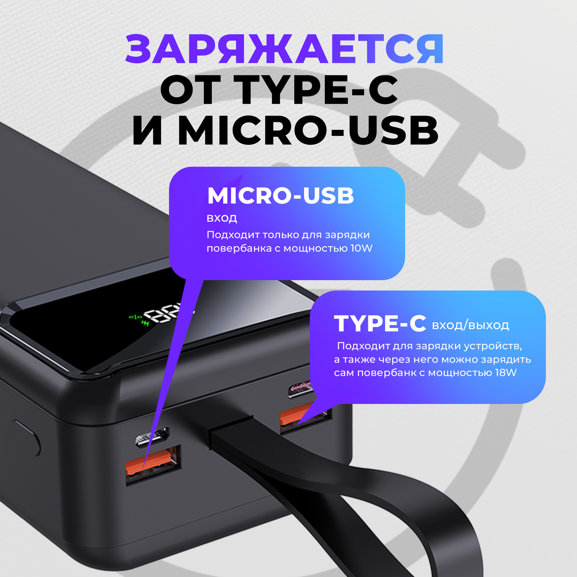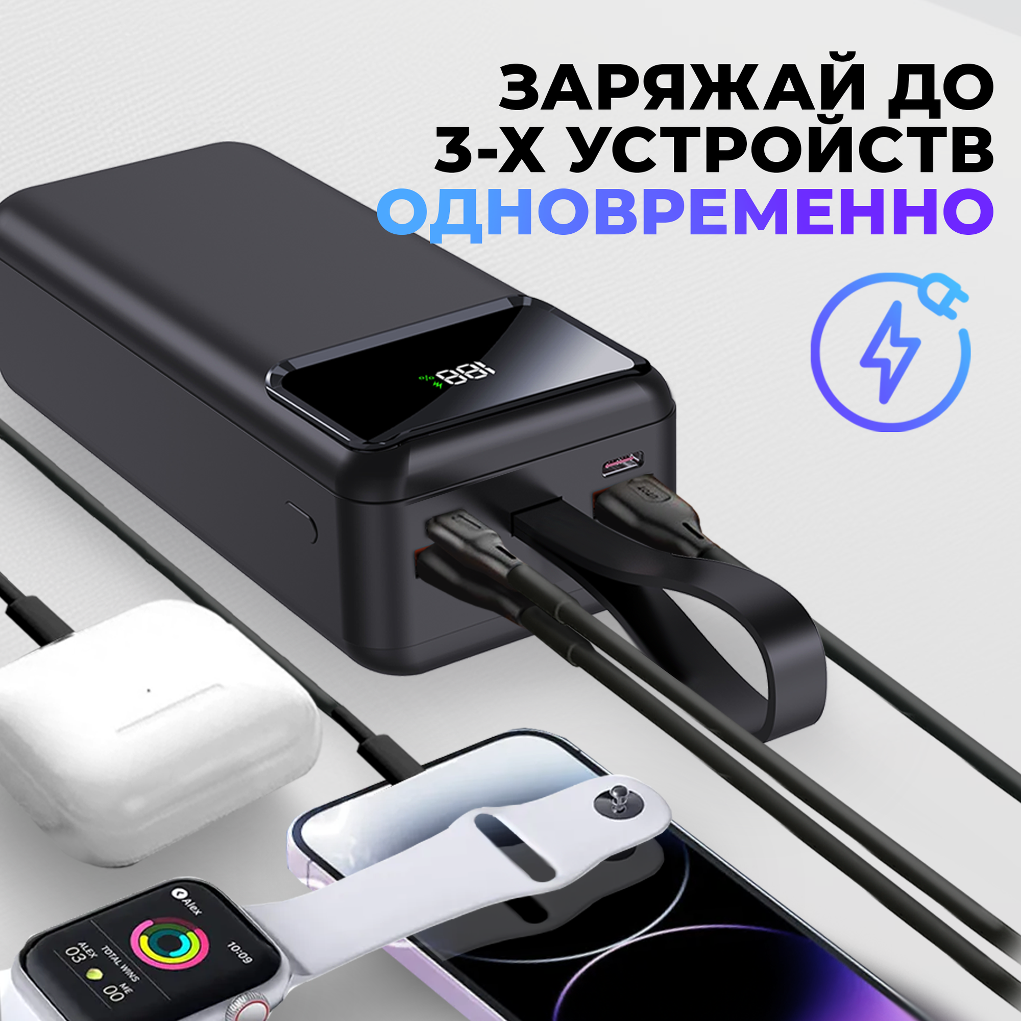 Повербанк Powerbank 30000mah с быстрой зарядкой, внешний аккумулятор для телефона iPhone, Xiaomi, Samsung