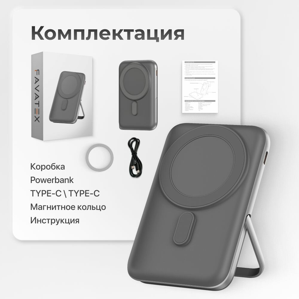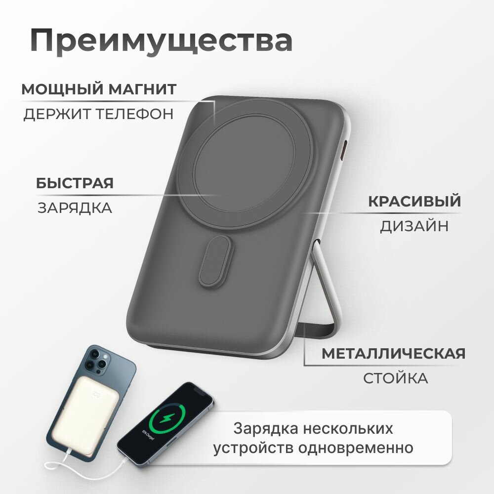 Внешний аккумулятор MagSafe Power Bank 10000 mAh для iPhone, серый информация: