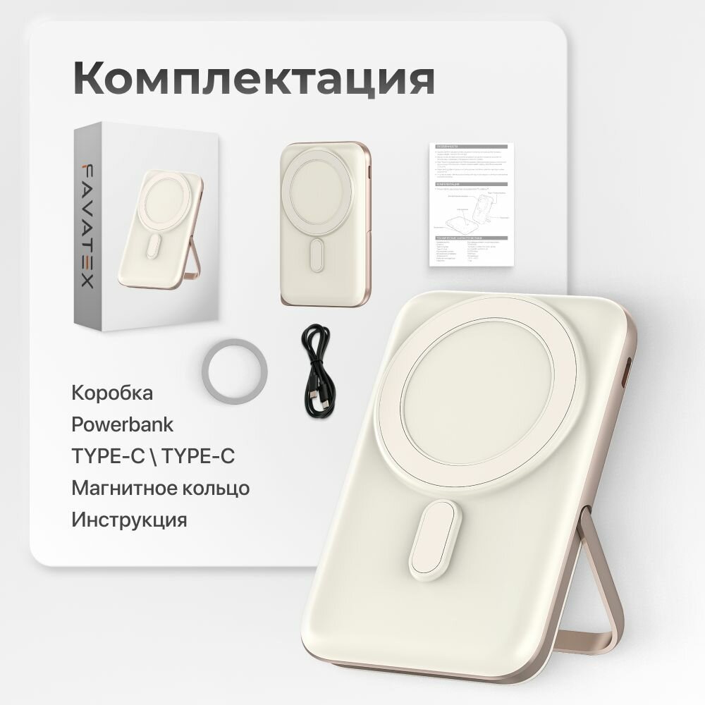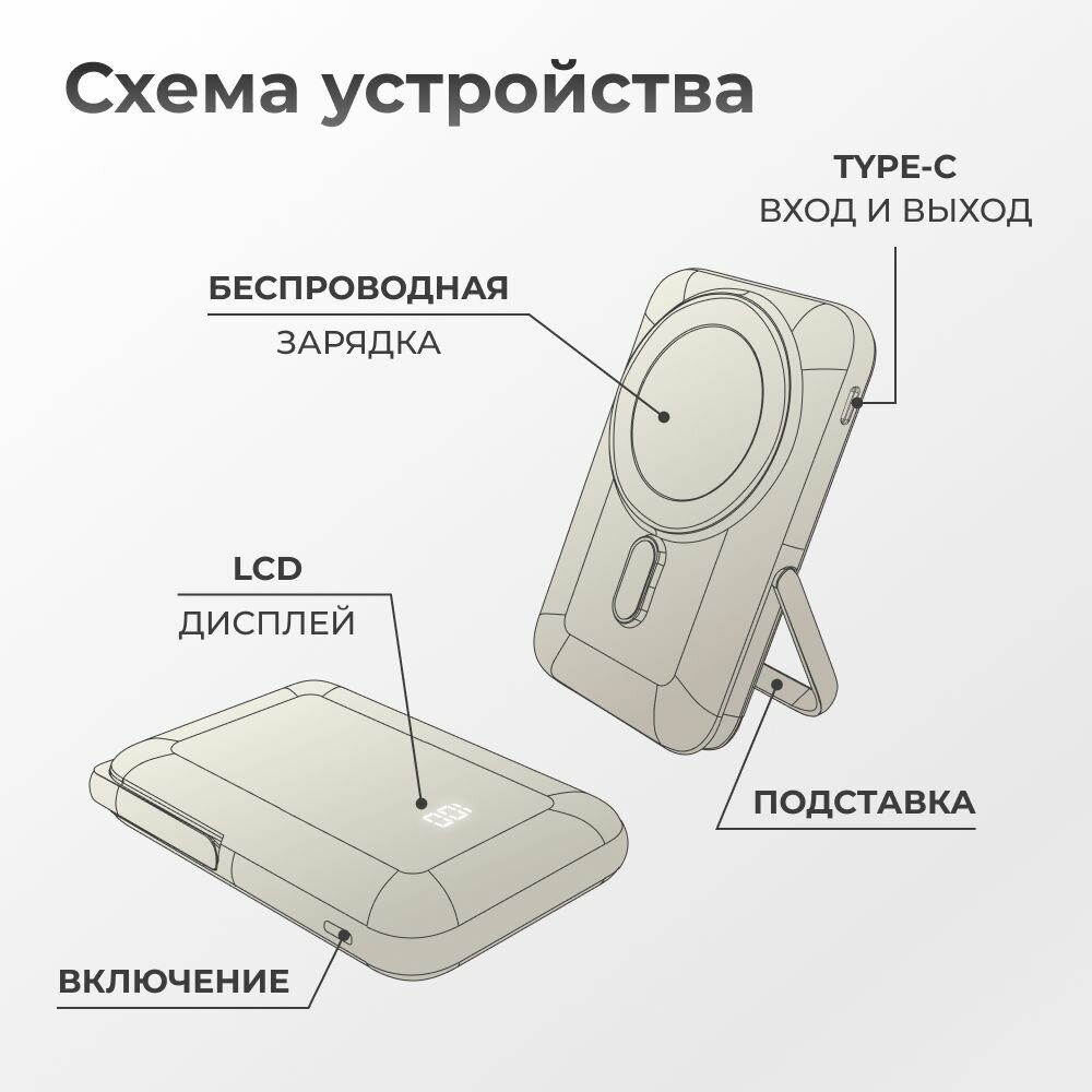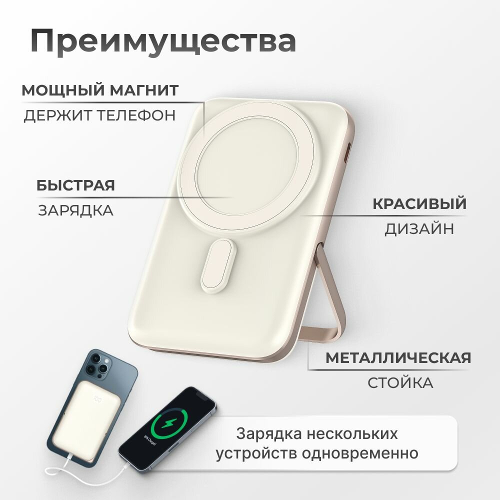 Внешний аккумулятор MagSafe Power Bank 10000 mAh для iPhone, бежевый информация: