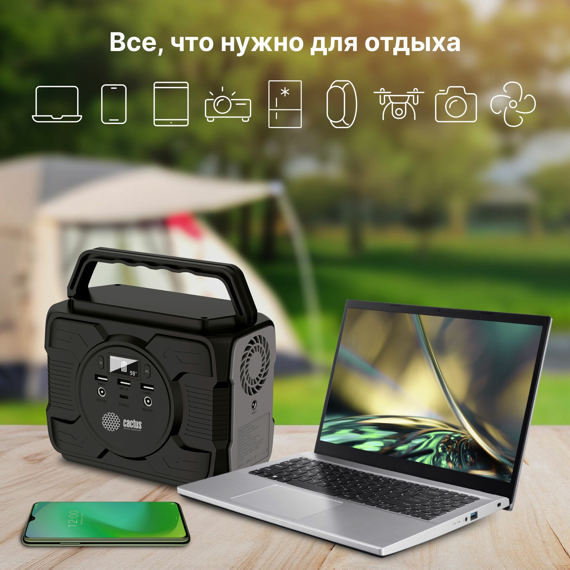 Отзывы на Портативная электростанция / внешний аккумулятор 48000 мАч с розеткой 220V Cactus CS-PCS172