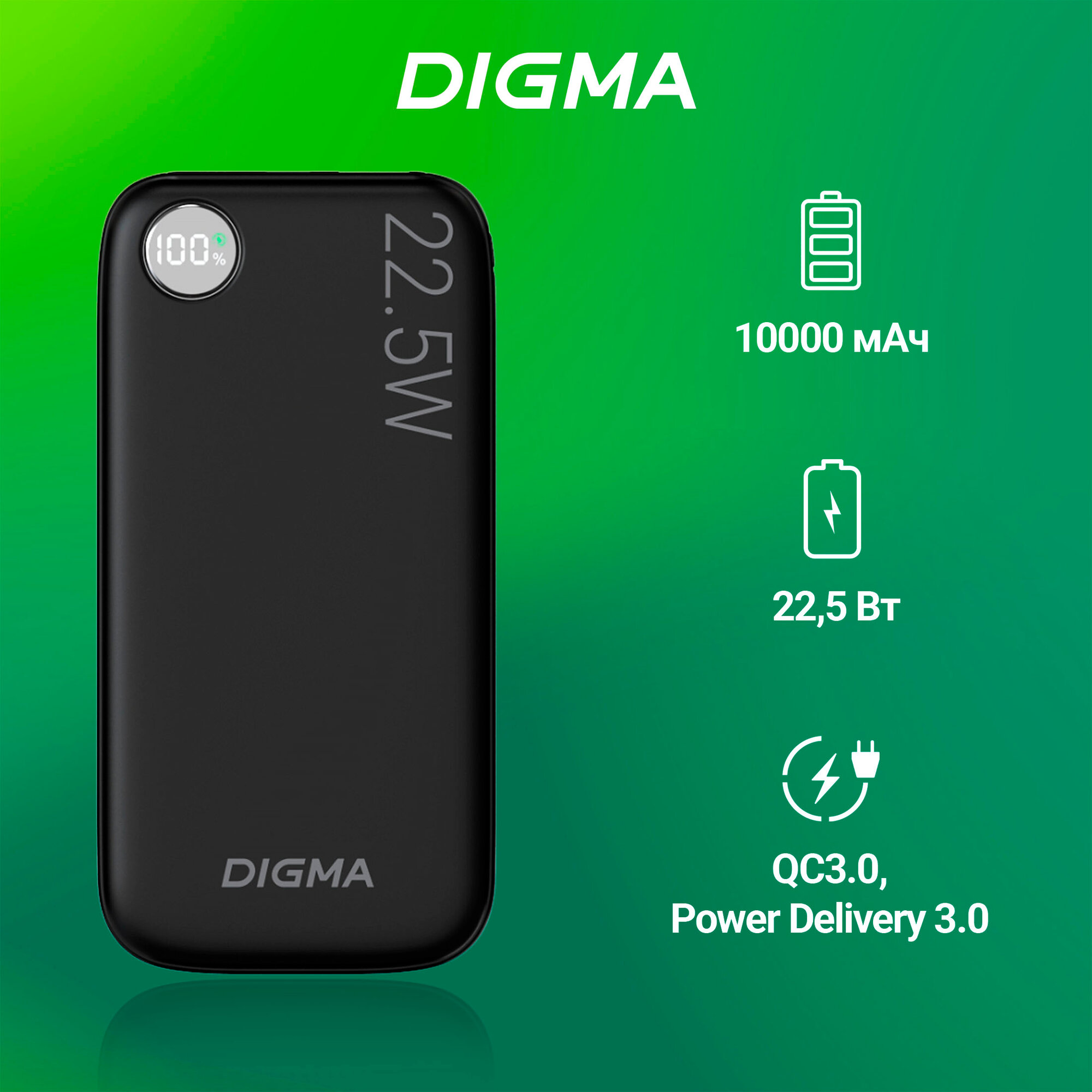 10 цен на Повербанк Digma 10000 DGPF10B с быстрой зарядкой