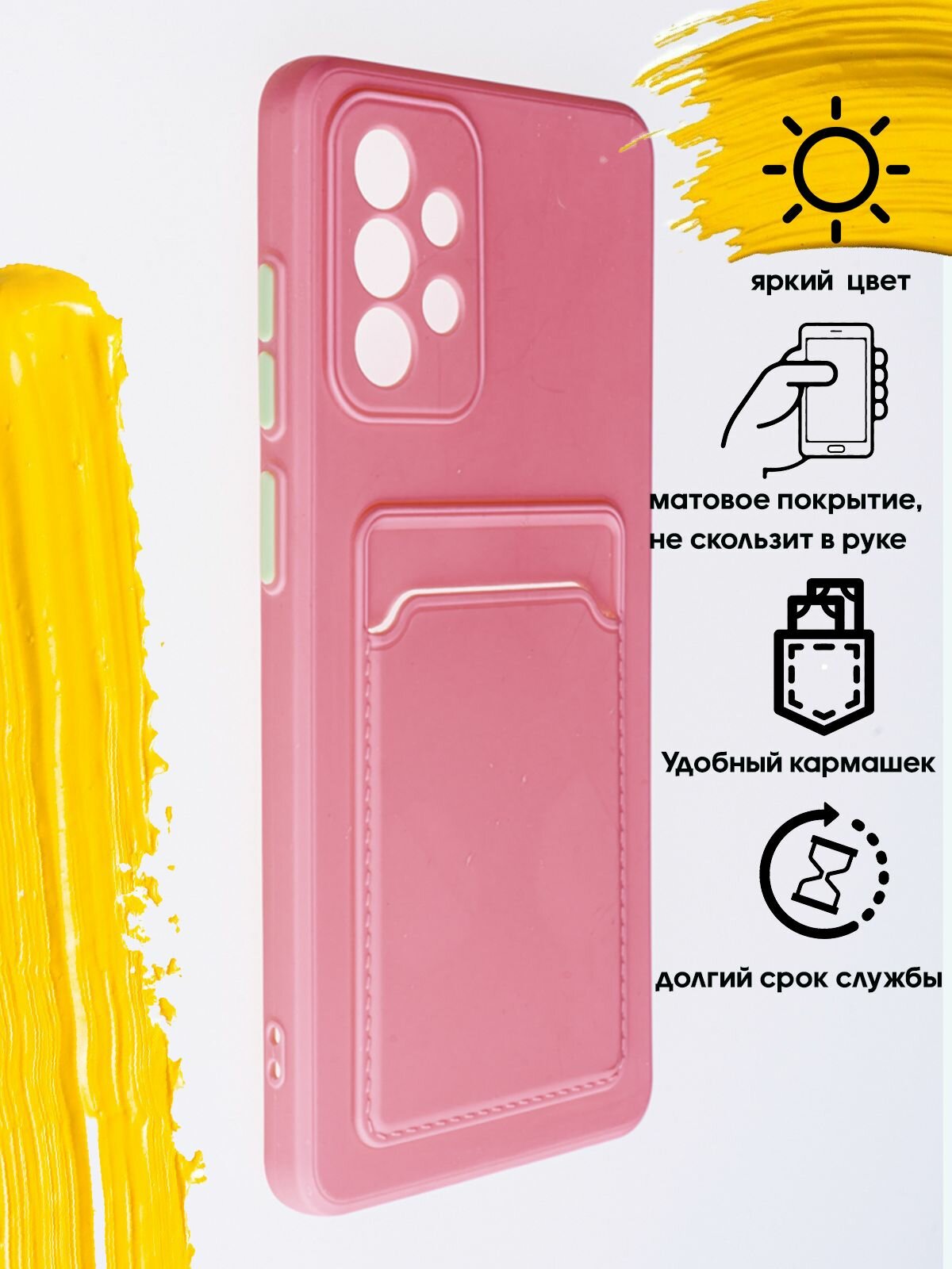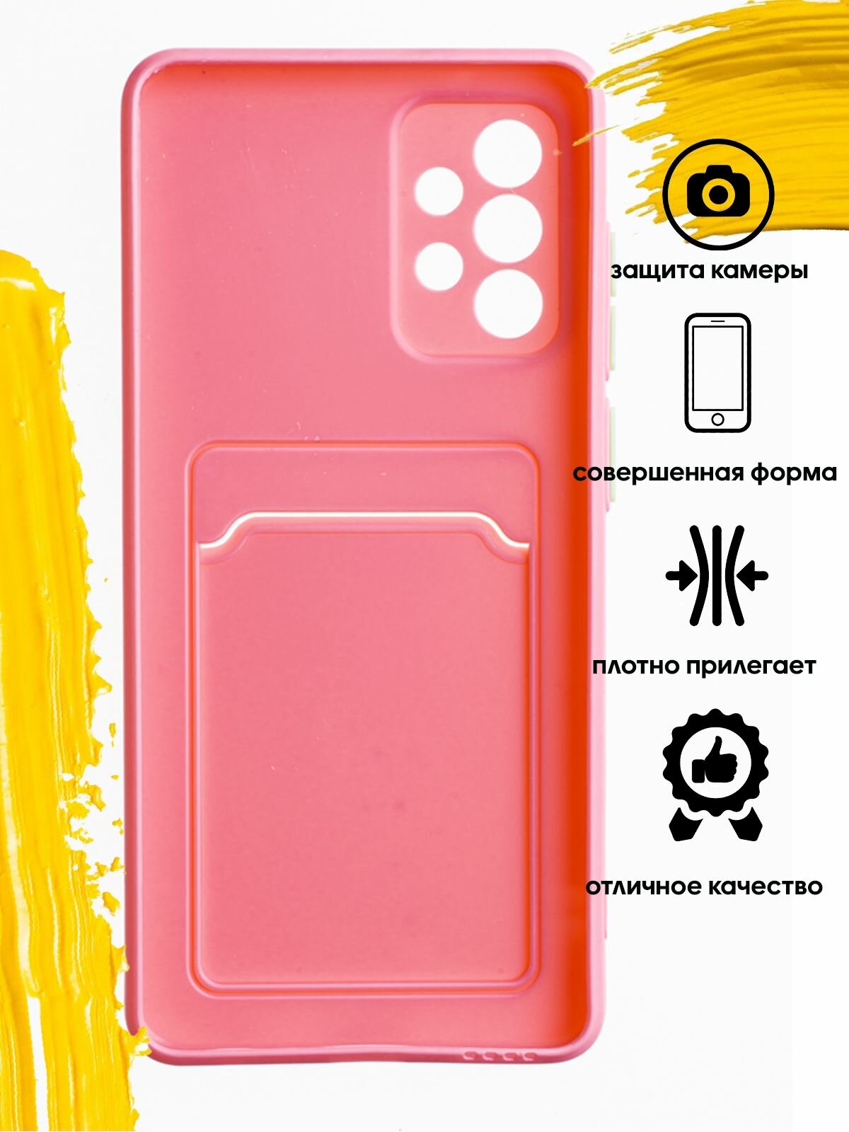 Чехол для карты на Samsung Galaxy A73 / чехол на самсунг а73 с защитой камеры розовый информация: