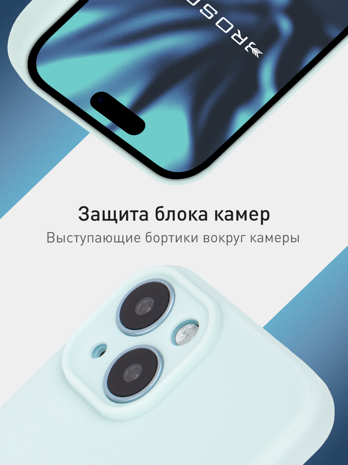Отзывы на Силиконовый чехол ROSCO для Apple iPhone 15 в цвет корпуса (Эпл Айфон 15), тонкий, матовое покрытие, защита модуля камер, голубой
