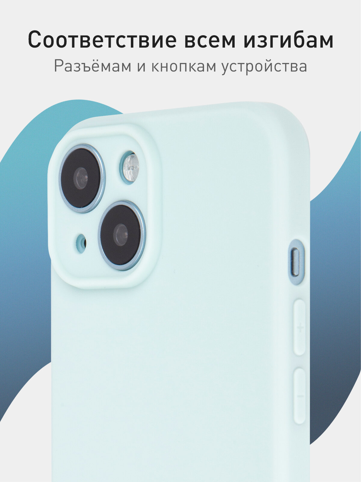 Матовый силиконовый чехол Rosco на Apple iPhone 15 (Айфон 15), тонкий, голубой под цвет телефона 480 ₽