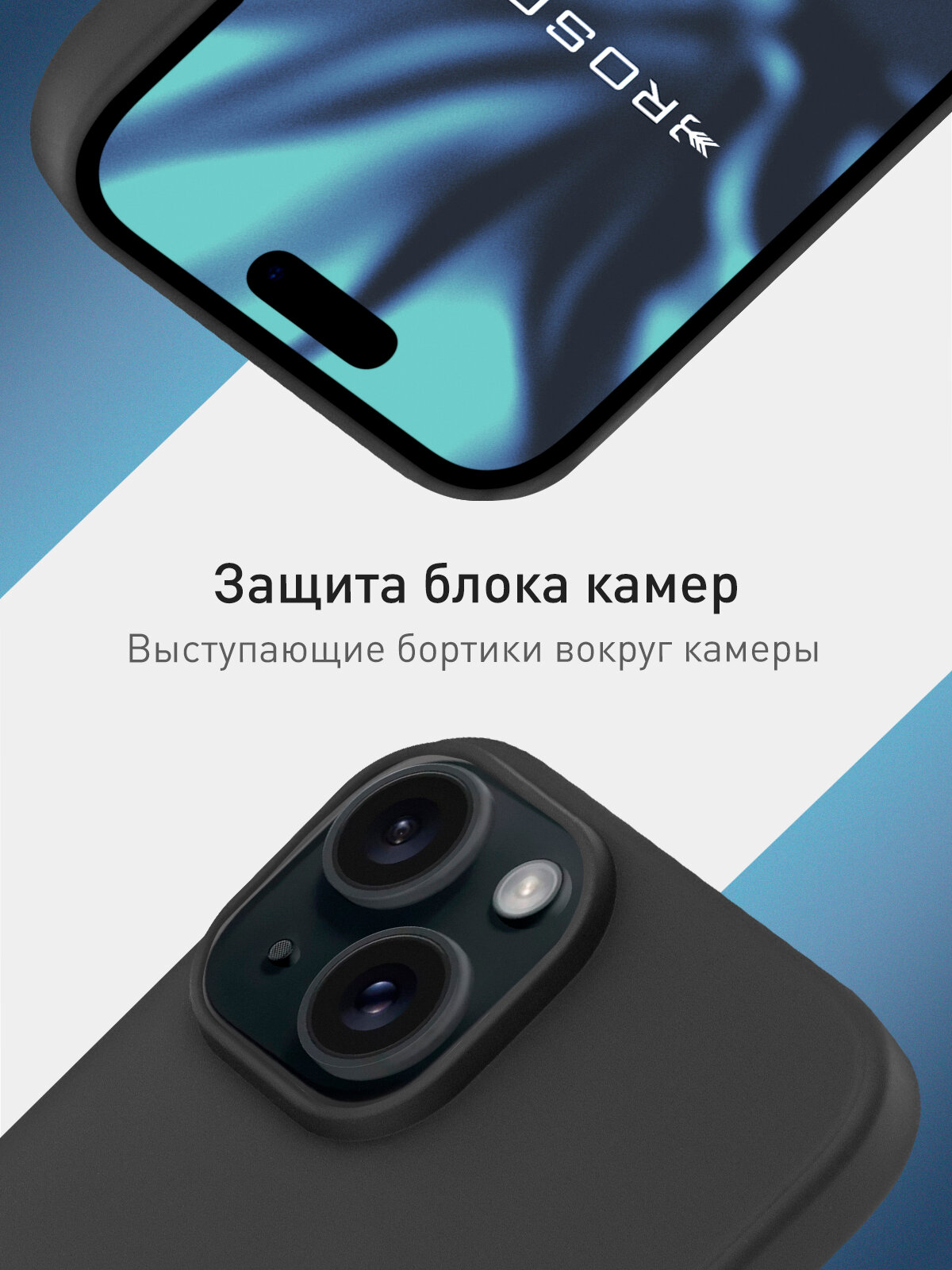 Чехол для Apple iPhone 15 (Эпл Айфон 15), матовая накладка ROSCO, бортик (защита) модуля камер, силиконовый чехол черный 317 ₽