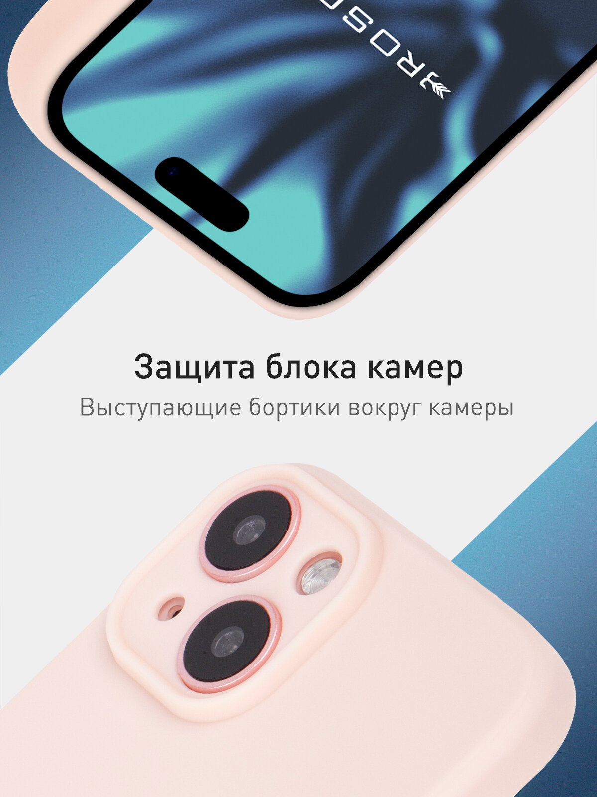 Отзывы на Силиконовый чехол ROSCO для Apple iPhone 15 в цвет корпуса (Эпл Айфон 15), тонкий, матовое покрытие, защита модуля камер, бежево-розовый