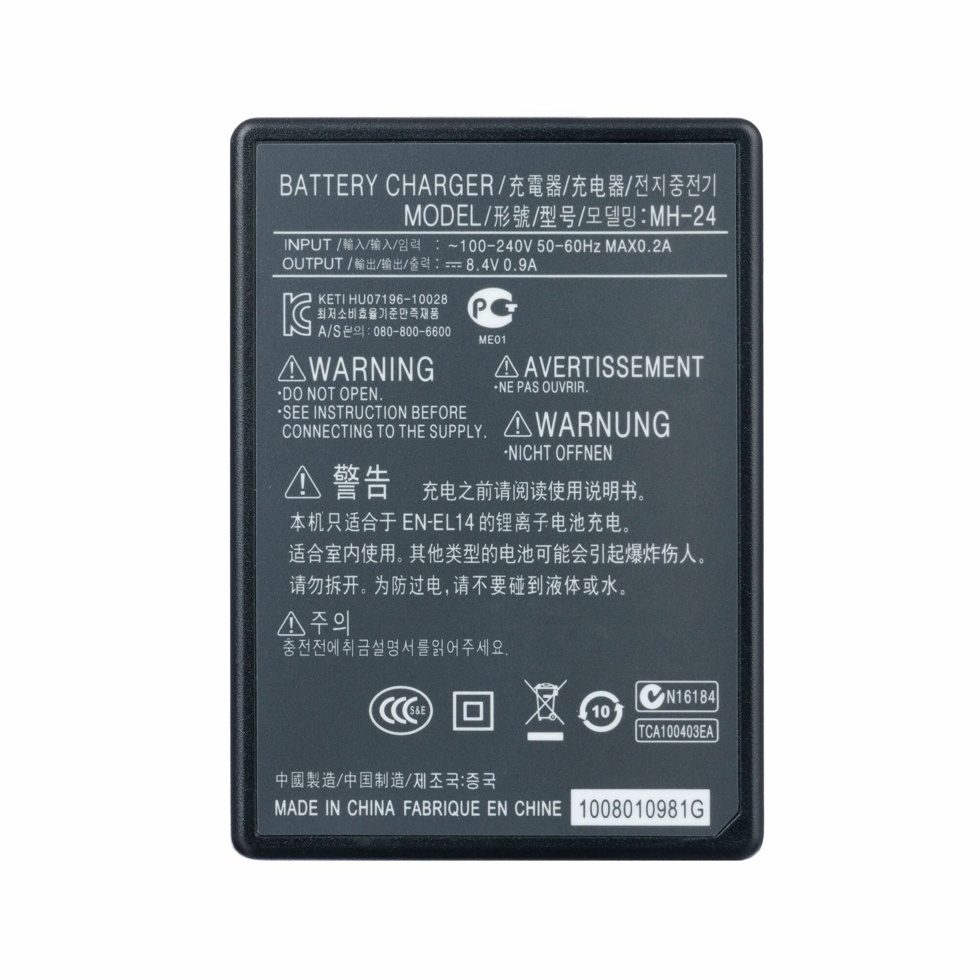 | Совместимость | MH-24 / D3100 / D5100 / D3200 / D5300 / D5200 / D3300 / D5600 / D3400 / D5500 / Df / Coolpix P7000 / Coolpix P7100 / Coolpix P7700 / Coolpix P7800. EN-EL14 / EN-EL14a |