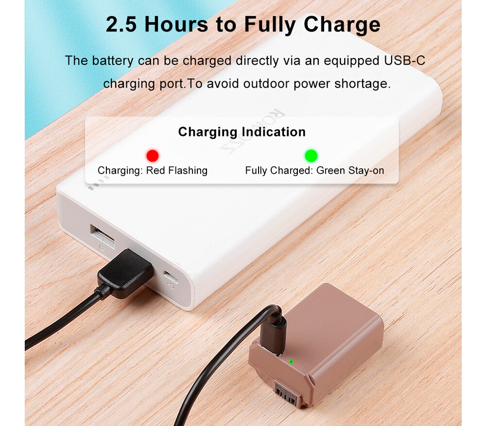 Аккумулятор Kingma NP-FW50, 1080 мАч, с портом зарядки Type-C информация: